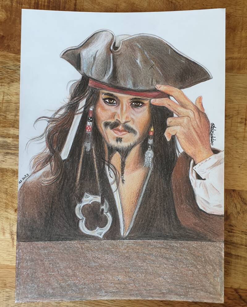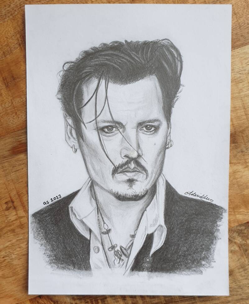 Ik werk graag met potlood. Zowel HB in combinatie met 4B als kleurpotloden.