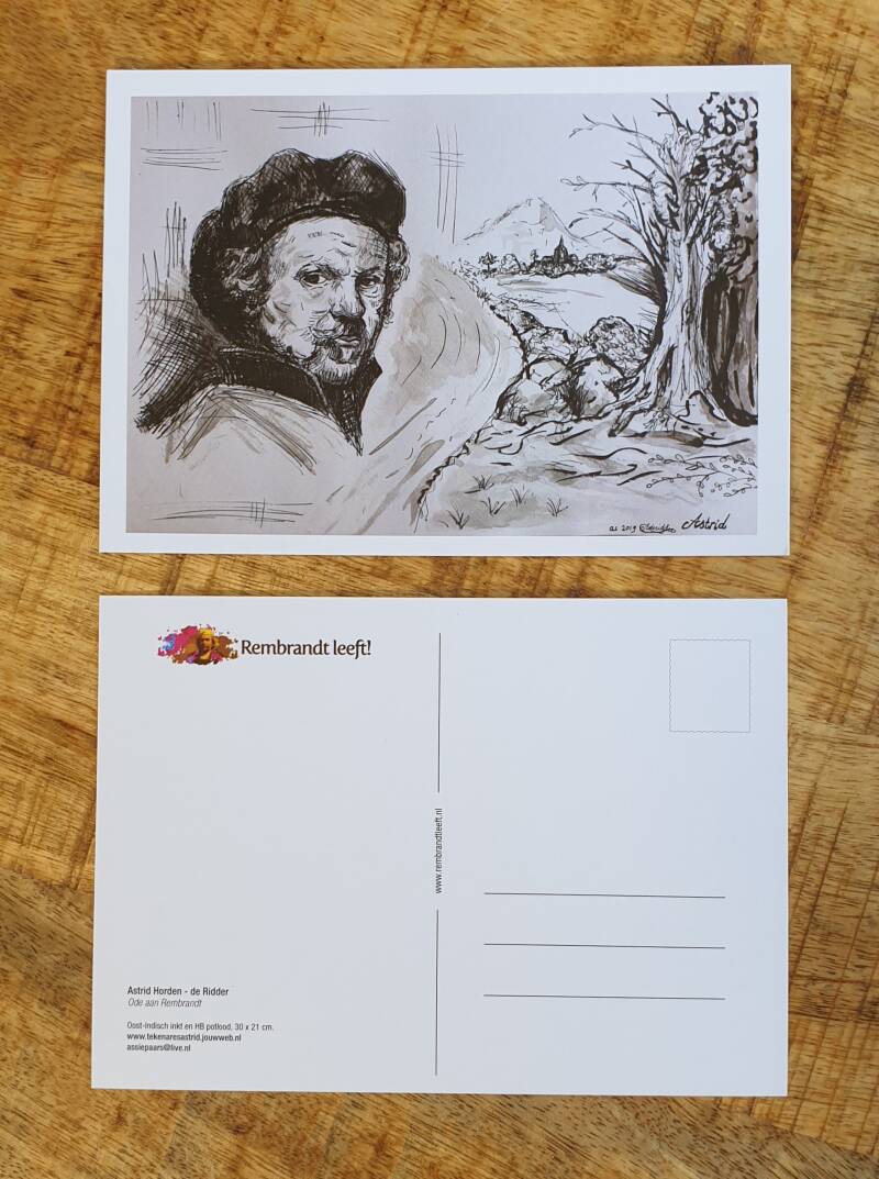 De volgende kaart is een kopie van een tekening die ik maakte voor het project: Rembrandt leeft! (er is er nog 1 beschikbaar)