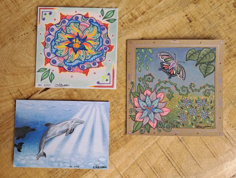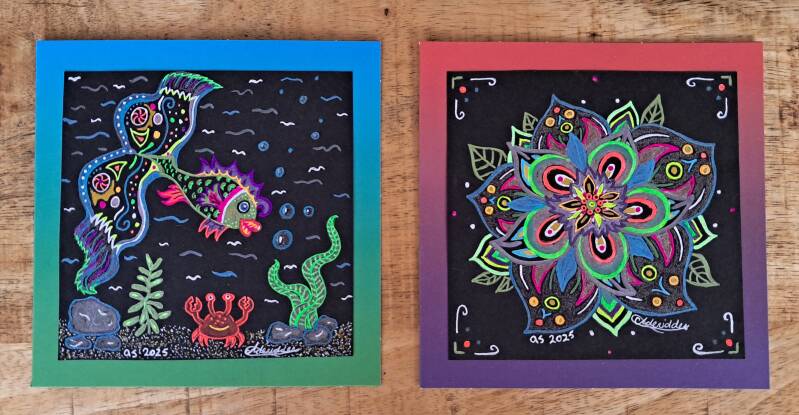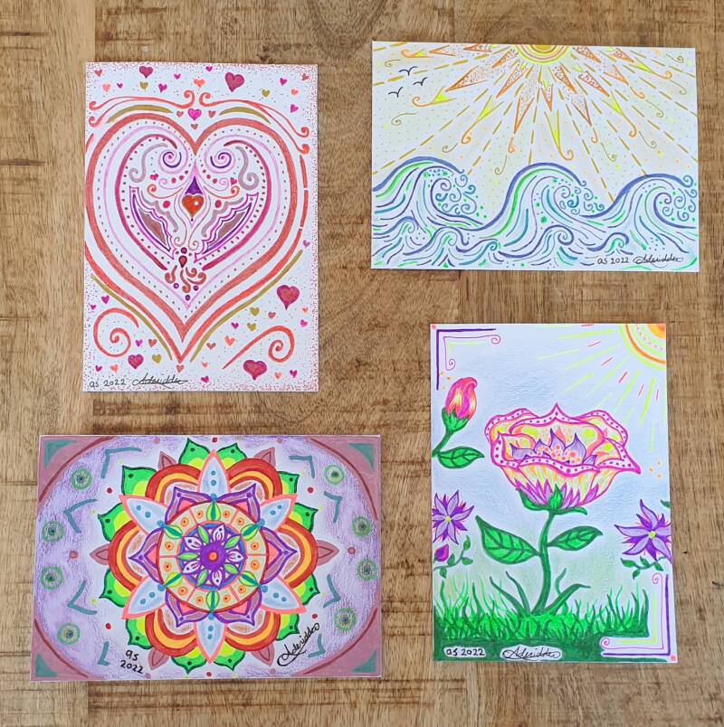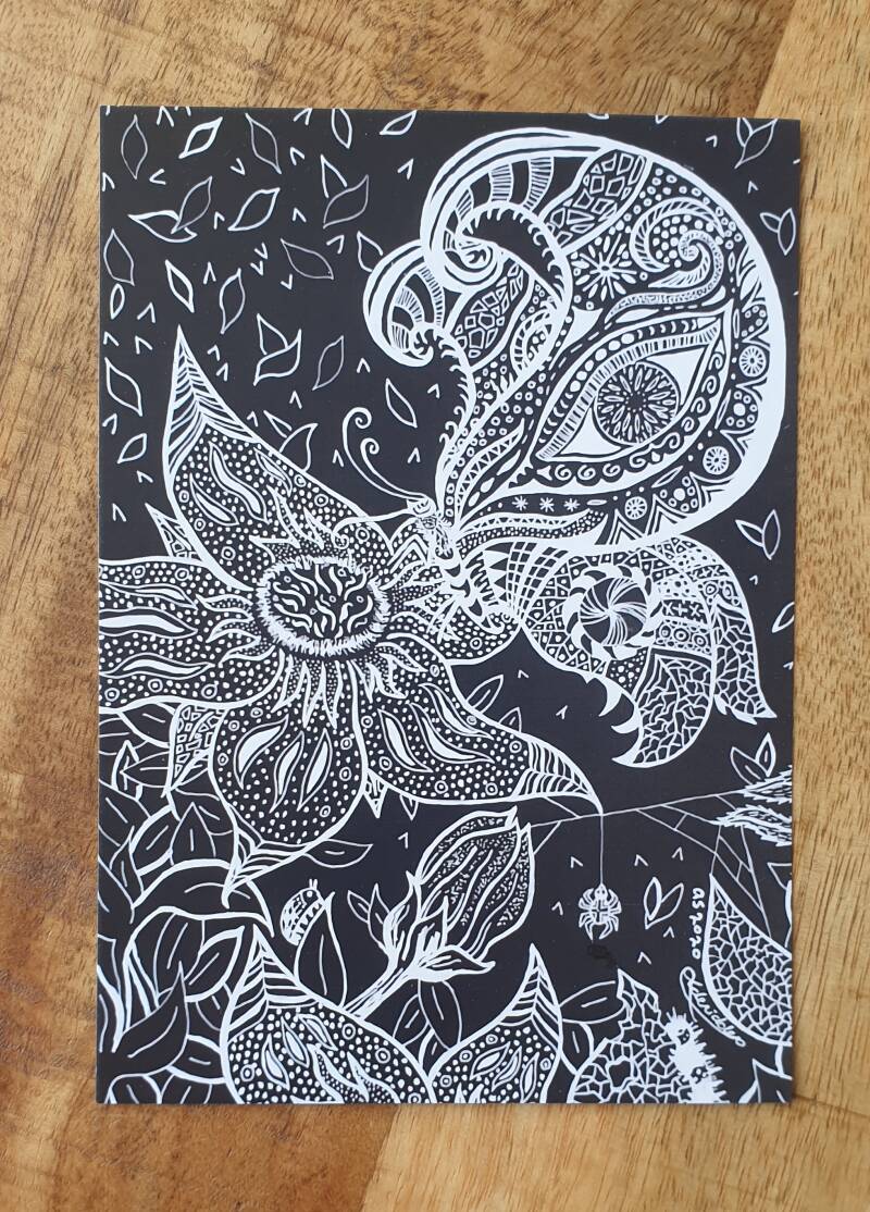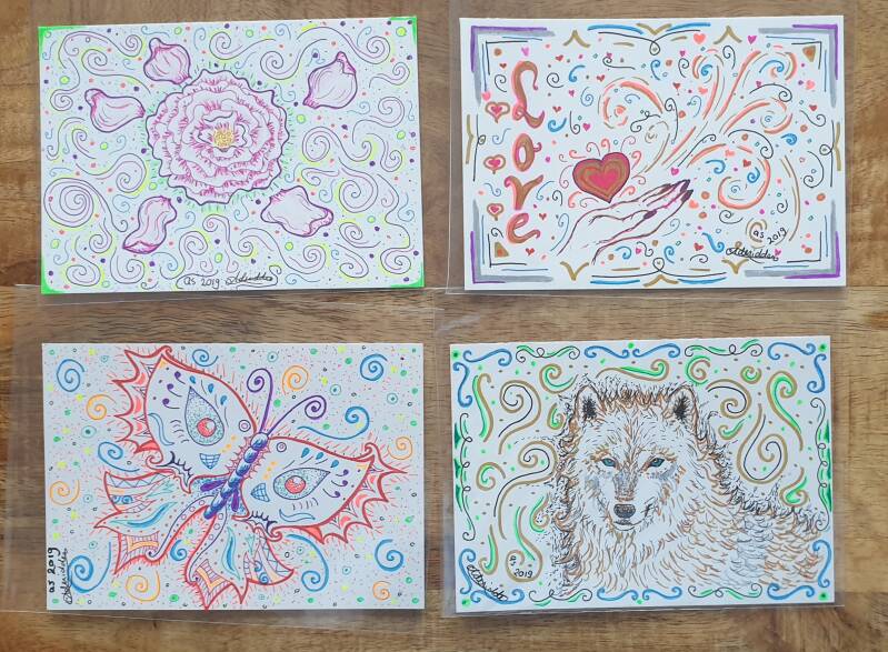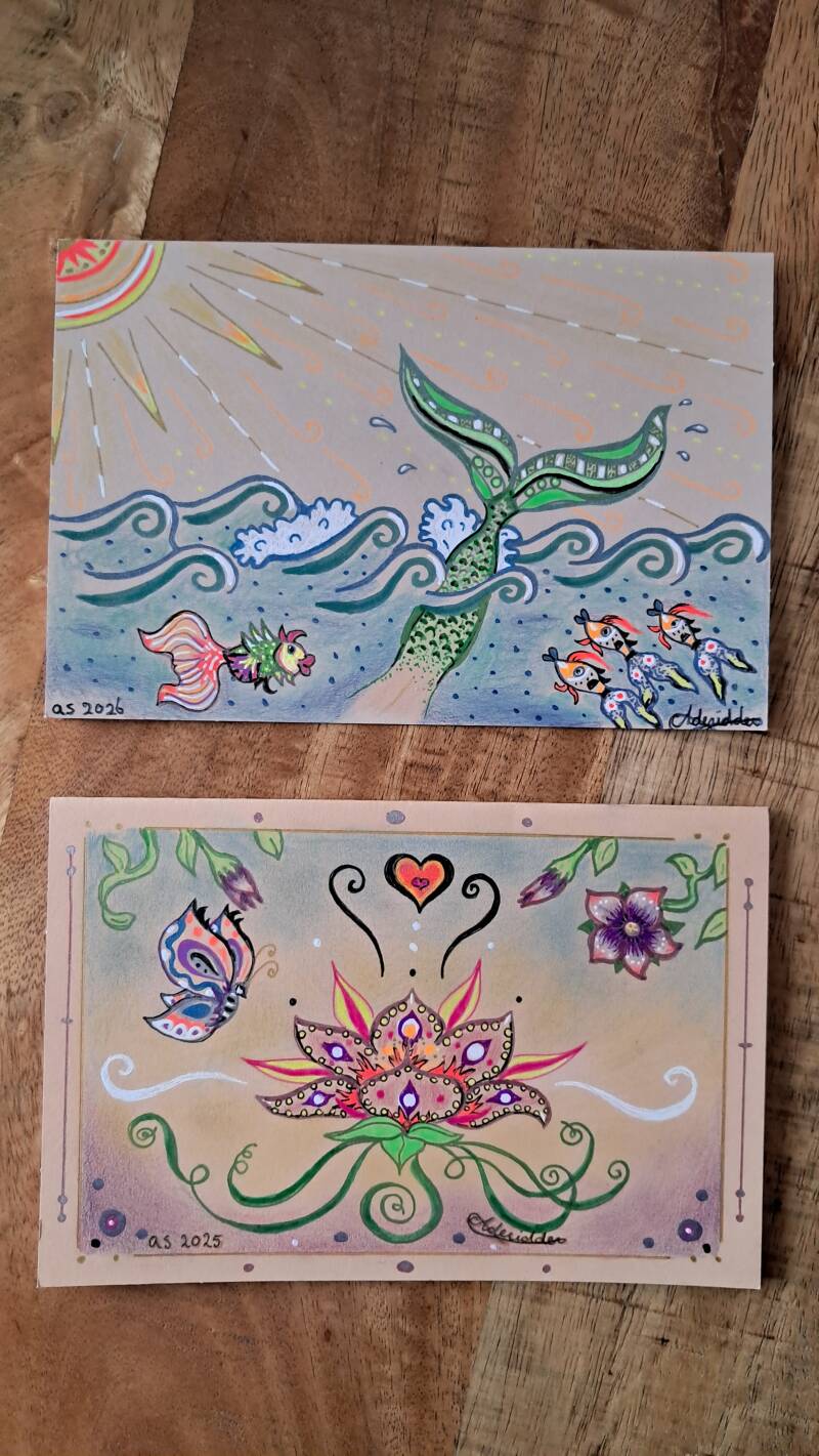 Een aantal kaarten zijn een kopie van de originele tekening die ik heb gemaakt. En een aantal zijn uniek, daar is er dus maar 1 van gemaakt.