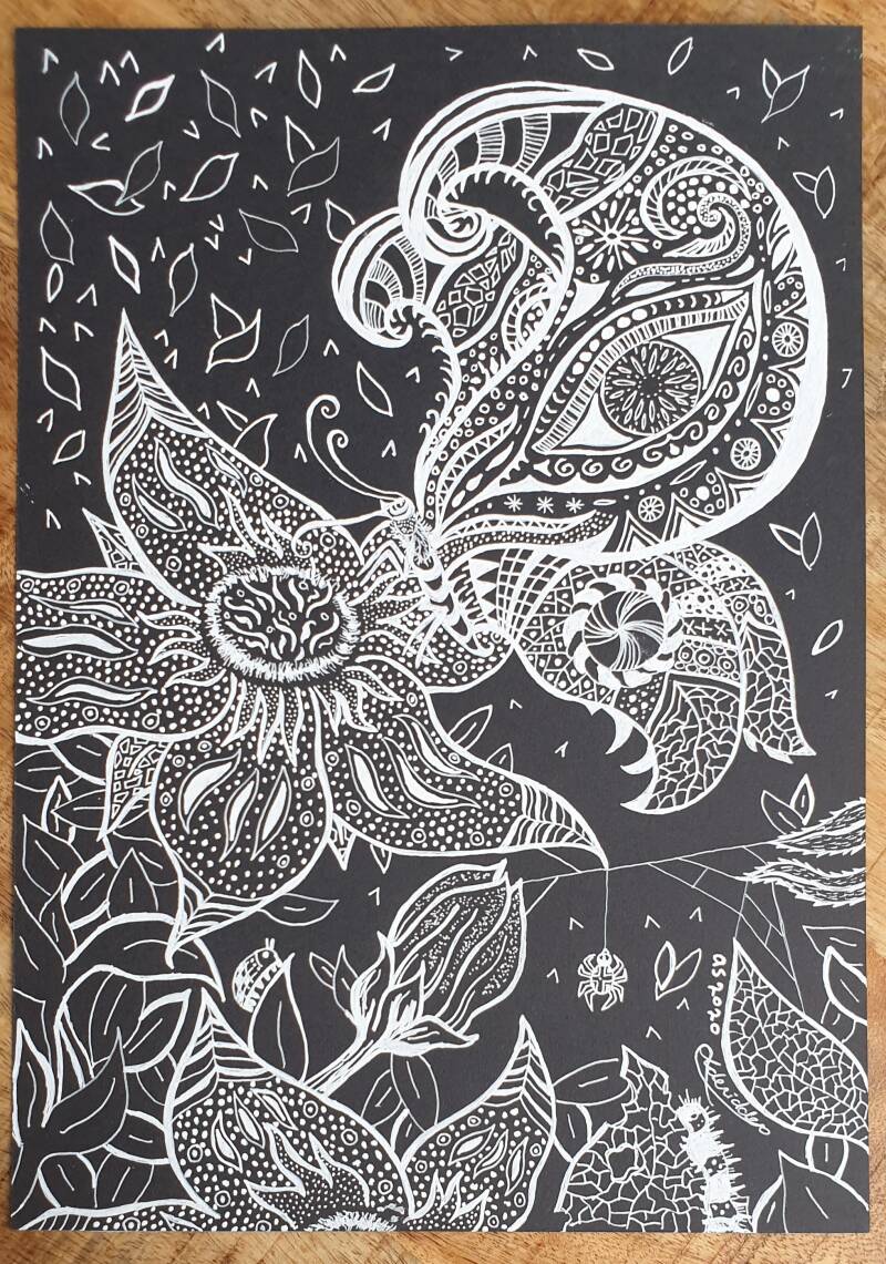 Op deze pagina staan gel-pen tekeningen (wit op zwart) die ik verkoop.