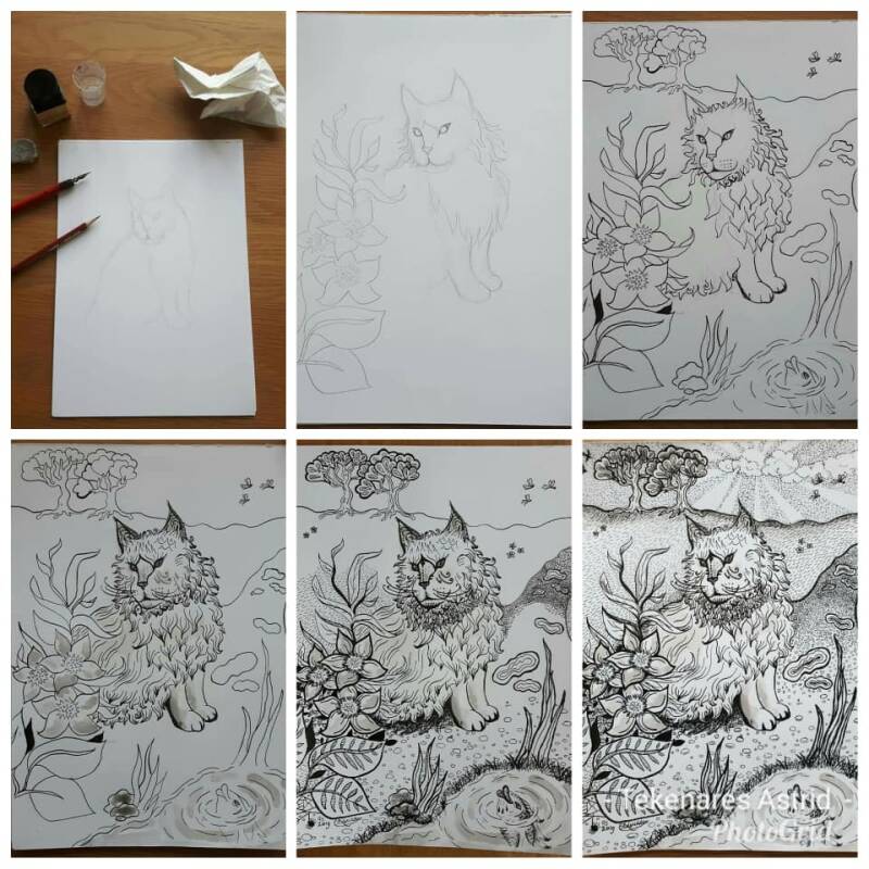 Ik heb er onderin ook foto's bij gezet waarop je een aantal van mijn tekeningen van begin tot eind kunt zien.
